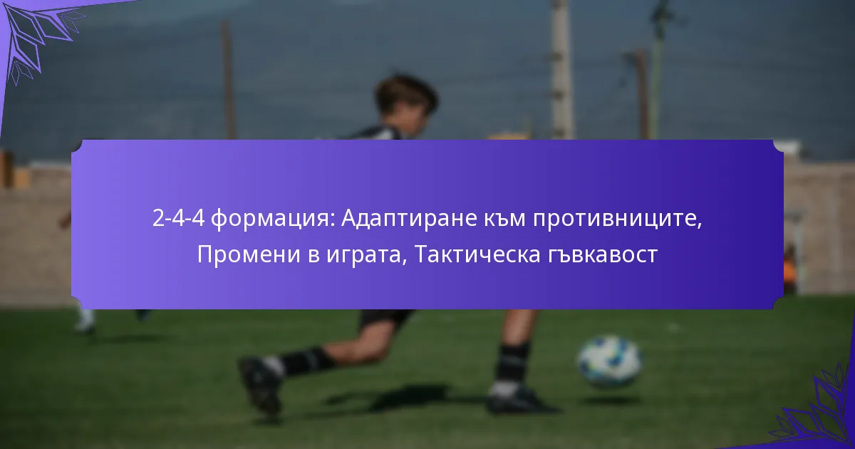 Формацията 2-4-4 в футбола е динамична тактическа настройка, която приоритизира атакуващата игра, като същевременно предоставя солидна основа за адаптивност срещу различни противници. Чрез анализиране на силните и слабите страни на съперниците, отборите могат да модифицират ролите на играчите и да прилагат промени в играта, осигурявайки тактическа гъвкавост, която подобрява общото представяне. Тази формация не само позволява стратегически корекции, но също така дава възможност на треньорите да използват ефективно смени и да променят формации, когато е необходимо по време на мача.