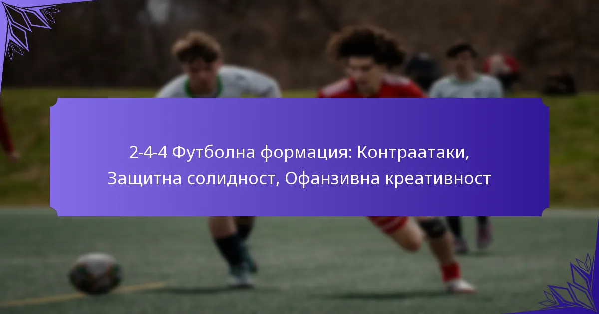 Футболната формация 2-4-4 е динамична тактическа схема, която комбинира двама защитници, четирима полузащитници и четирима нападатели, приоритизираща офанзивната креативност, като същевременно осигурява защитна солидност. Тази формация улеснява бързите контраатаки, позволявайки на отборите да се възползват от уязвимостите на противниците и бързо да преминават от защита в атака. Чрез използването на скоростта и стратегическото позициониране на играчите, формацията 2-4-4 създава множество възможности за гол, като същевременно поддържа здрава защитна структура.