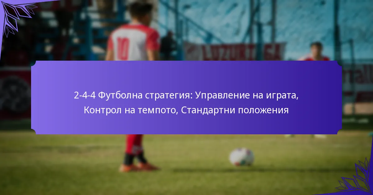 Управлението на игра с формата 2-4-4 включва контрол на темпото, осигуряване на защитна стабилност и ефективно използване на статични положения. Тази стратегия изисква баланс между атака и защита, като същевременно се адаптира към потока на играта.