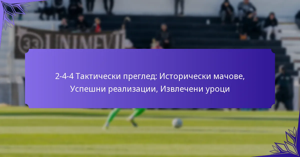 Формацията 2-4-4 е научила ценни уроци относно тактическата гъвкавост и динамиката на отбора във футбола. Нейните исторически приложения разкриват както успешни стратегии, така и чести капани, които отборите трябва да преодолеят, за да внедрят ефективно тази формация.